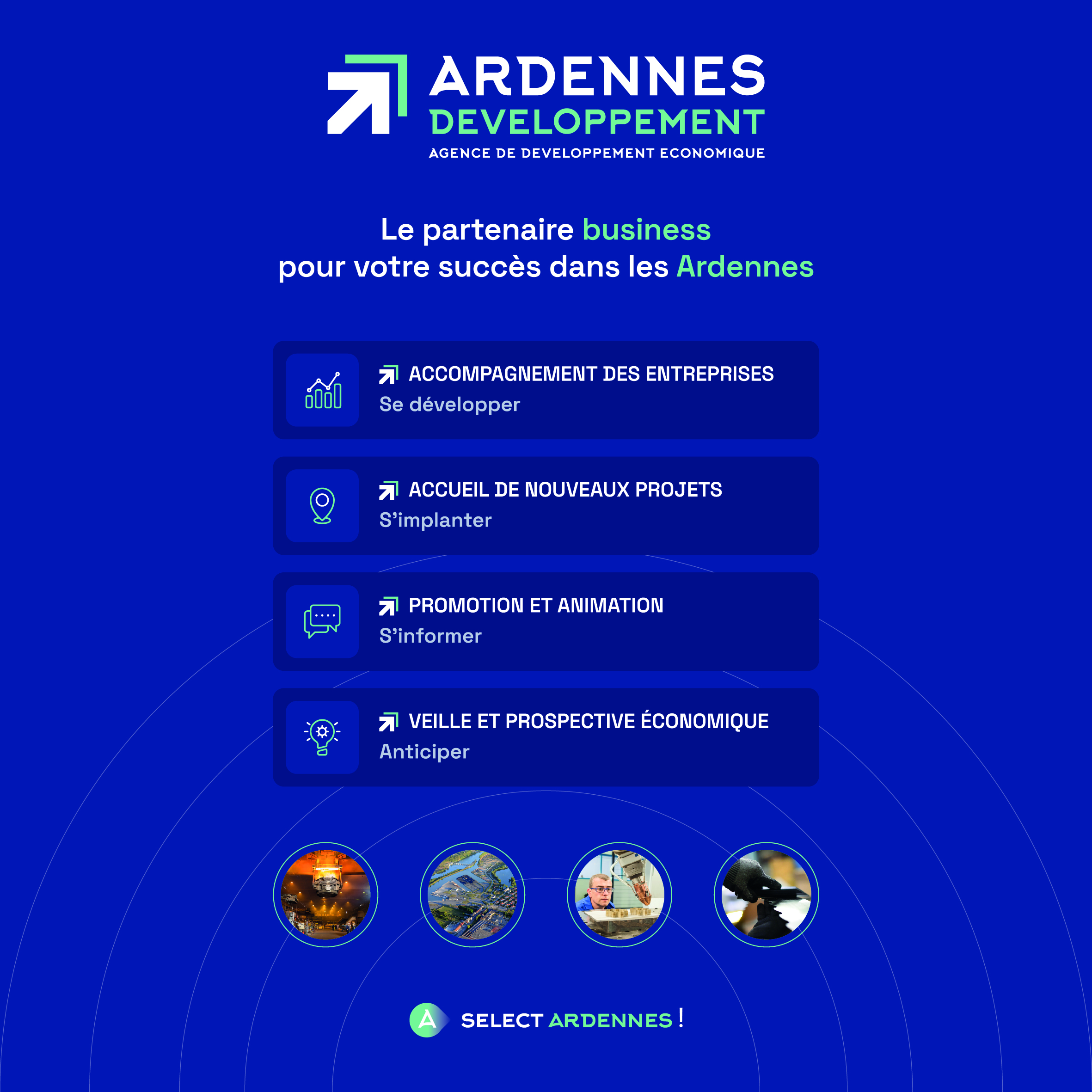 Partenaire business facilitateur du développement des entreprises, Ardennes Développement accompagne gratuitement et en confidentialité les projets de croissance dans les Ardennes.